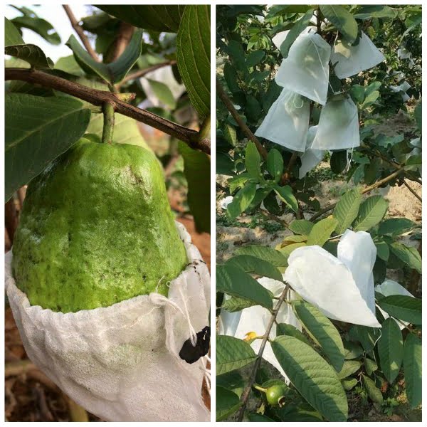 - Túi bóng: được làm băng chất liệu PE, đáy túi có lỗ để thoát nước và khí đọng không gây ảnh hưởng tới sự phát triển của quả ổi, có tác dụng bảo vệ trái quả không bị các côn trùng châm chích, phòng ngừa các hiện tượng sương muối làm vỏ trái không bị sần sù.